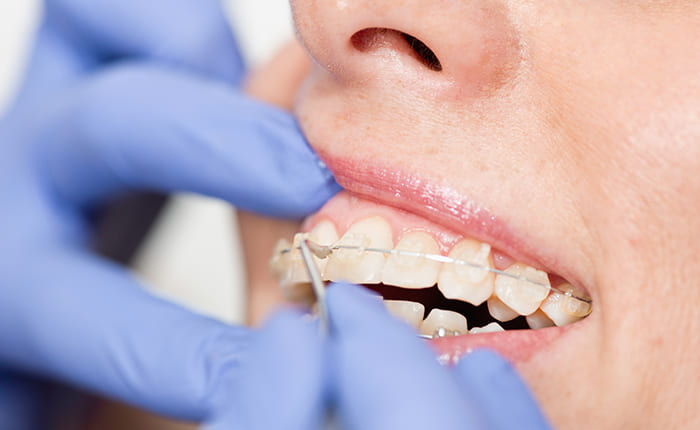 歯の表面にブラケットを装着してワイヤーを通し、ワイヤーに力を加えることで歯を動かす矯正法です。さまざまな症例に適応でき、装着し忘れなどのリスクを軽減できます。また、目立ちにくい白色のブラケットを選択することも可能です。