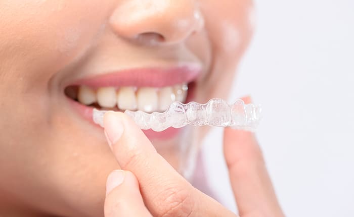 マウスピースを交換しながら少しずつ歯を動かす治療法です。マウスピースは透明のために目立ちにくく、スポーツや管楽器演奏への影響もほとんどありません。また、取り外しができるため、普段通りの食事やブラッシングができます。
